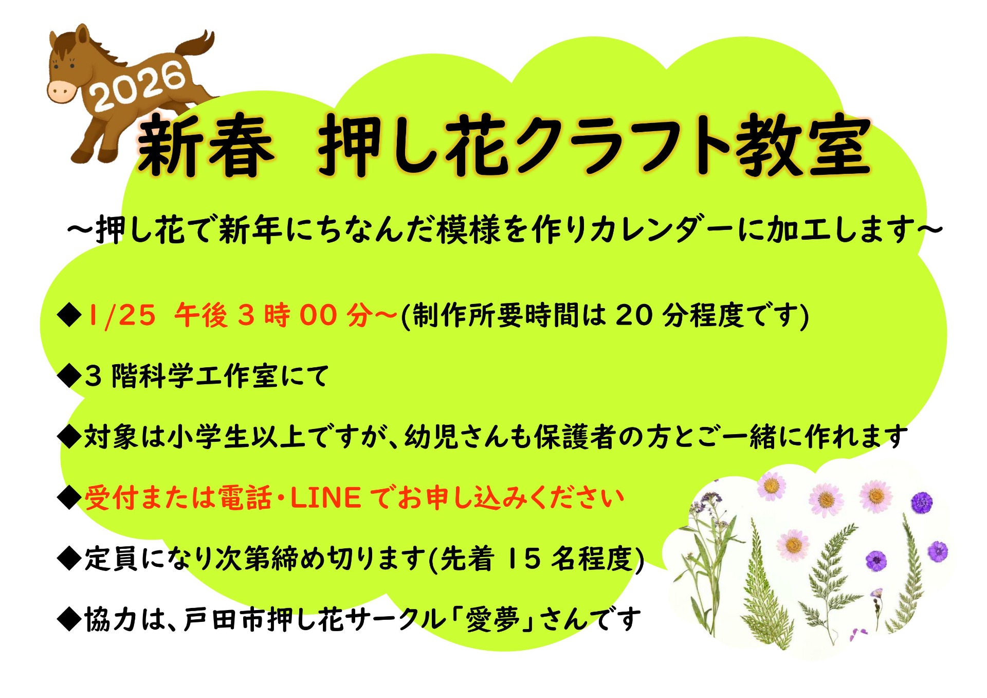 1/25日曜日ごろまで寒さが続くようです。暖かいプリムでホッとした時間を過ごしてください。押し花クラフト教室も行います。皆さんご参加ください!