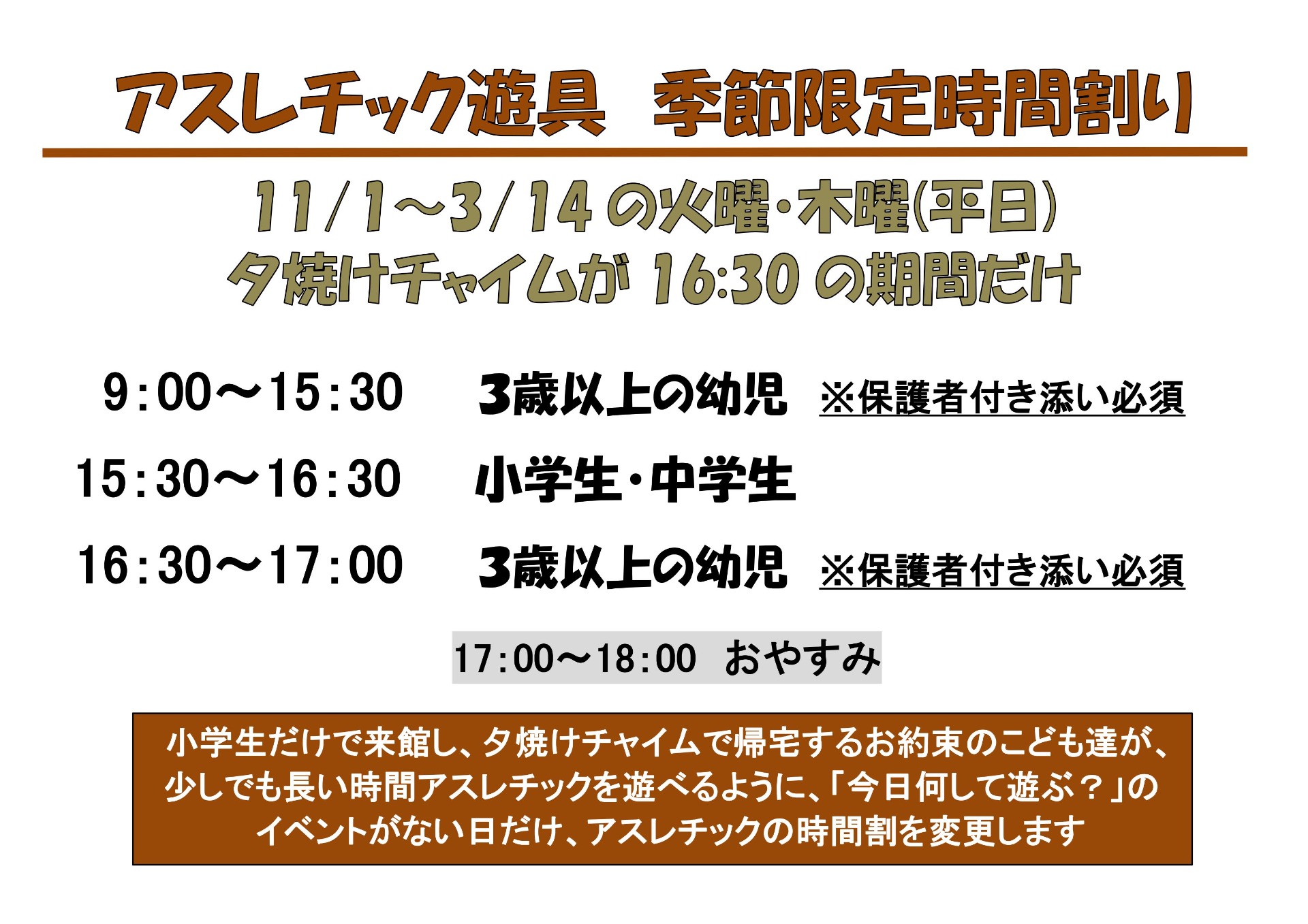 安全に遊べるように、時間別・年齢別のご利用となっています