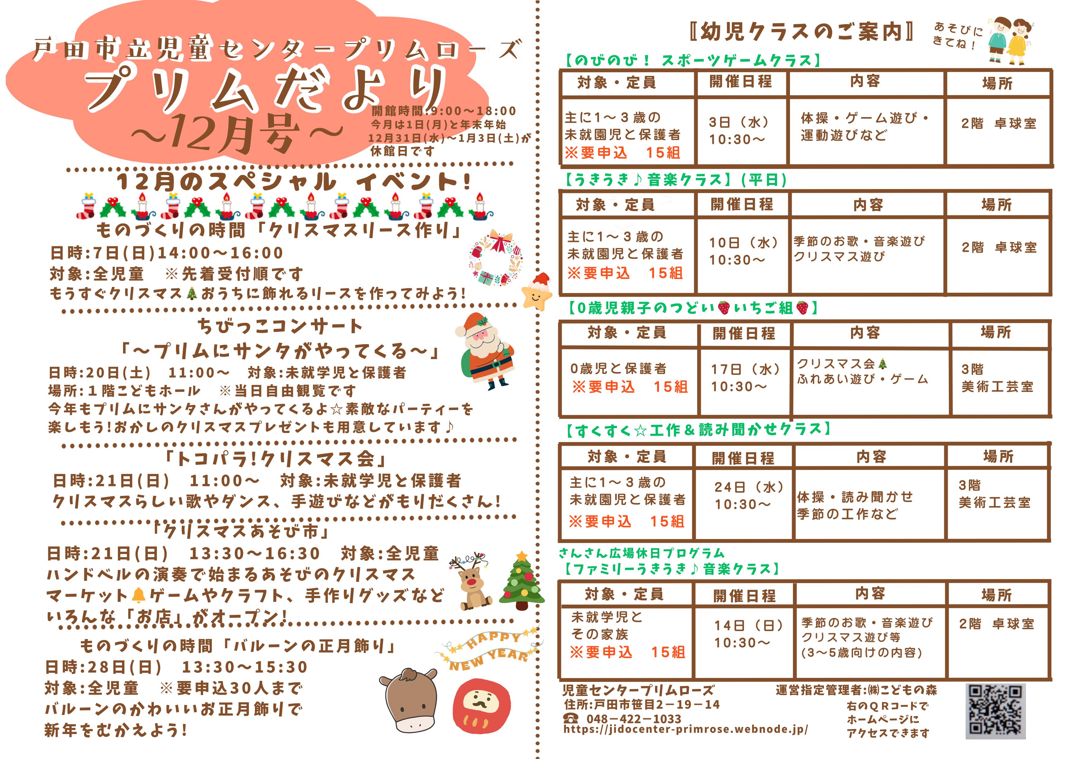 12月の全児童向けおたよりは下記 ※11月のおたよりは、11月末までダウンロードして 見られます